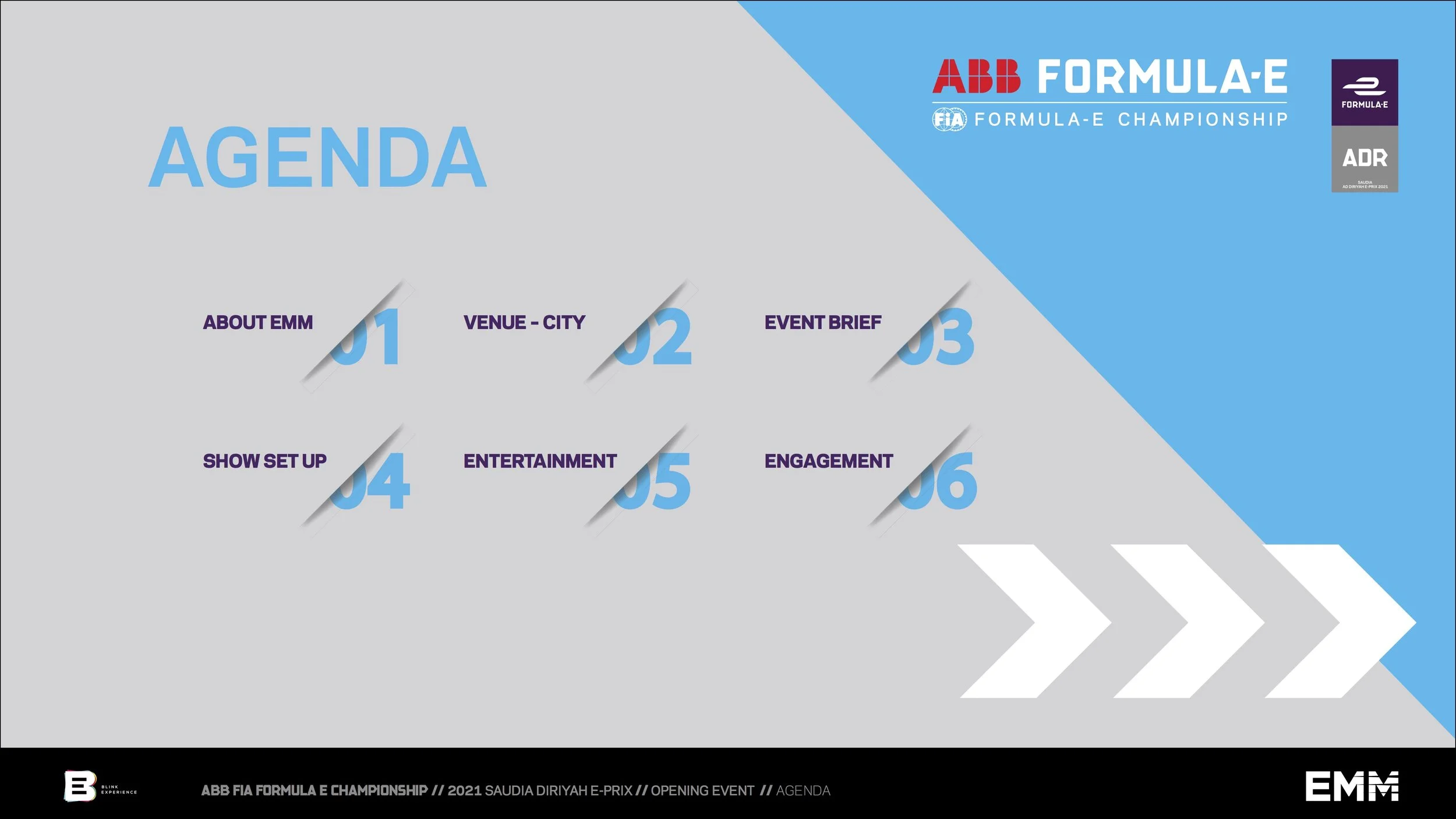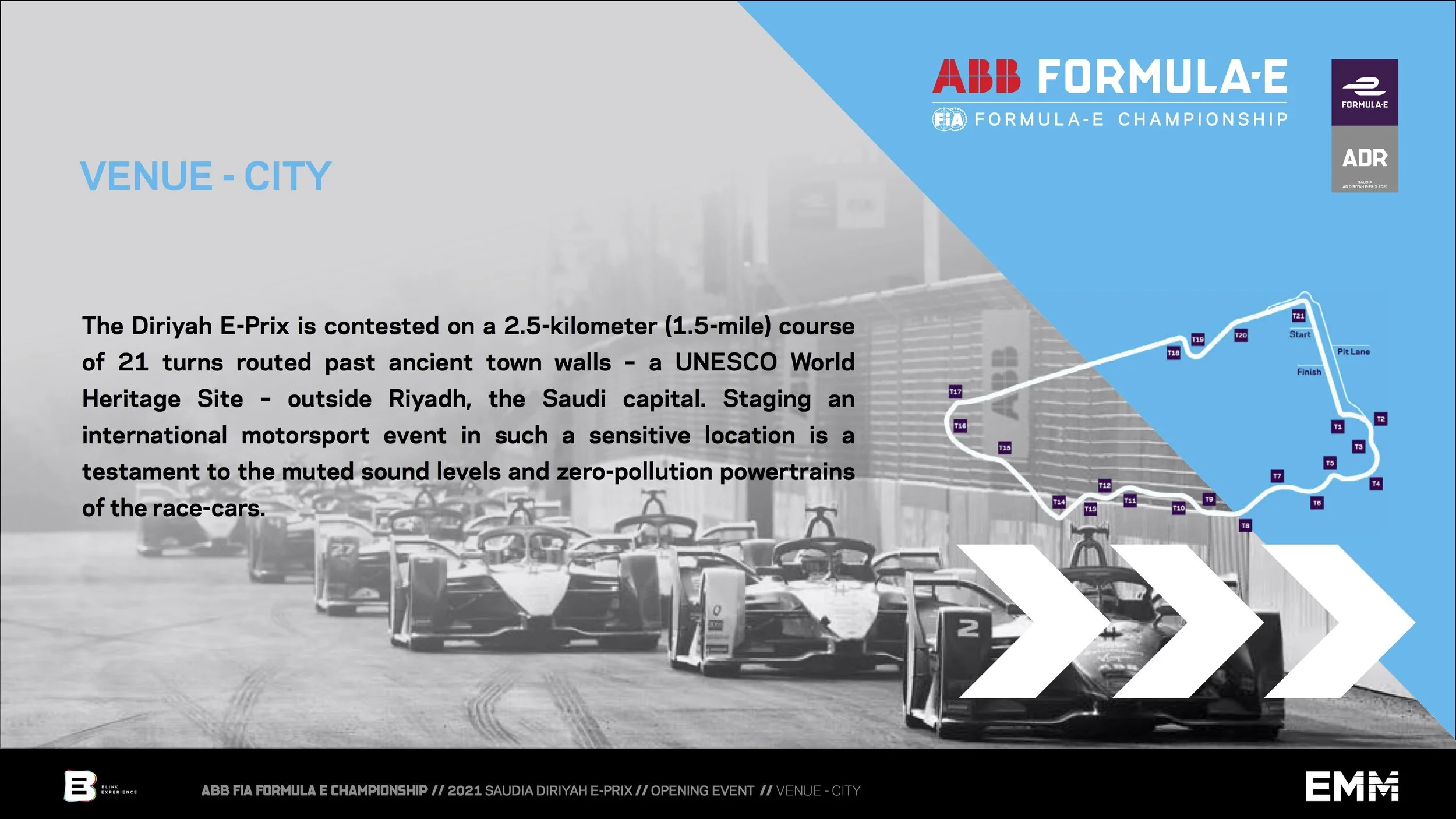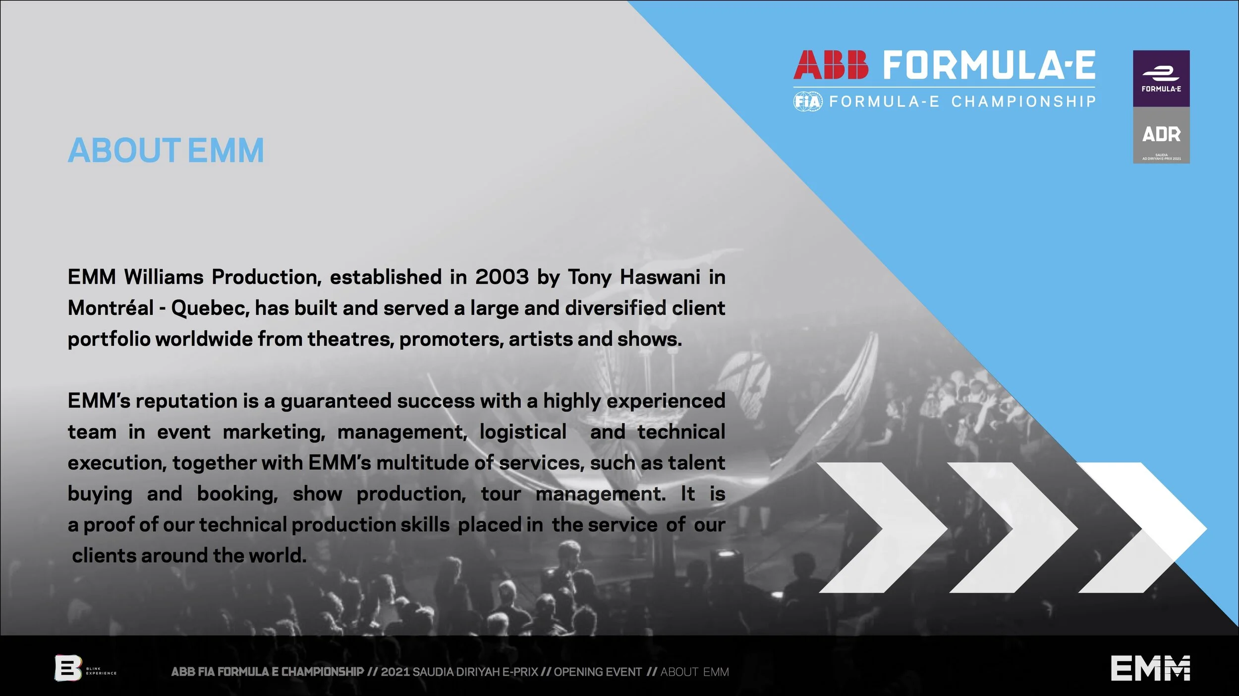 Client: EMM Williams ProductionArt direction & graphic design // Opening ceremony presentation // ABB Formula E